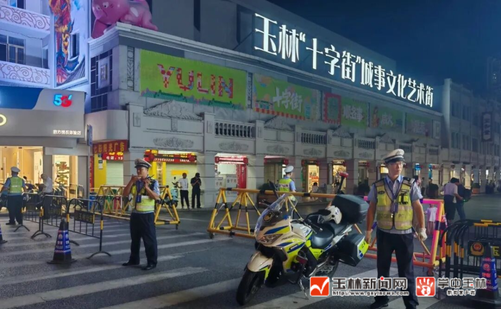 华灯初上。第三届玉林十字街城事文化艺术季热闹启幕,灯光璀璨、人潮涌动,而在这片光影交错中,始终有一群“小黄人”格外醒目——他们,就是玉林交警。