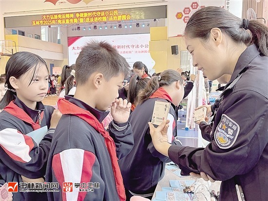 活动内容丰富、形式生动,通过宪法朗读、法治文艺表演和法治游园等环节,让学生在潜移默化中感受法律温度、明晰行为边界,进一步增强了法治意识。其中,法治游园活动深受学生喜爱,市委政法委、市公安局、市民政局、中国电信玉林分公司等单位精心设计了法治盲盒挑战、宪法“是非投掷桶”、法字成语填填看、“宪”入圈套等一系列寓教于乐的有奖游戏,学生们踊跃参与,在轻松愉快的氛围中快速掌握宪法知识。